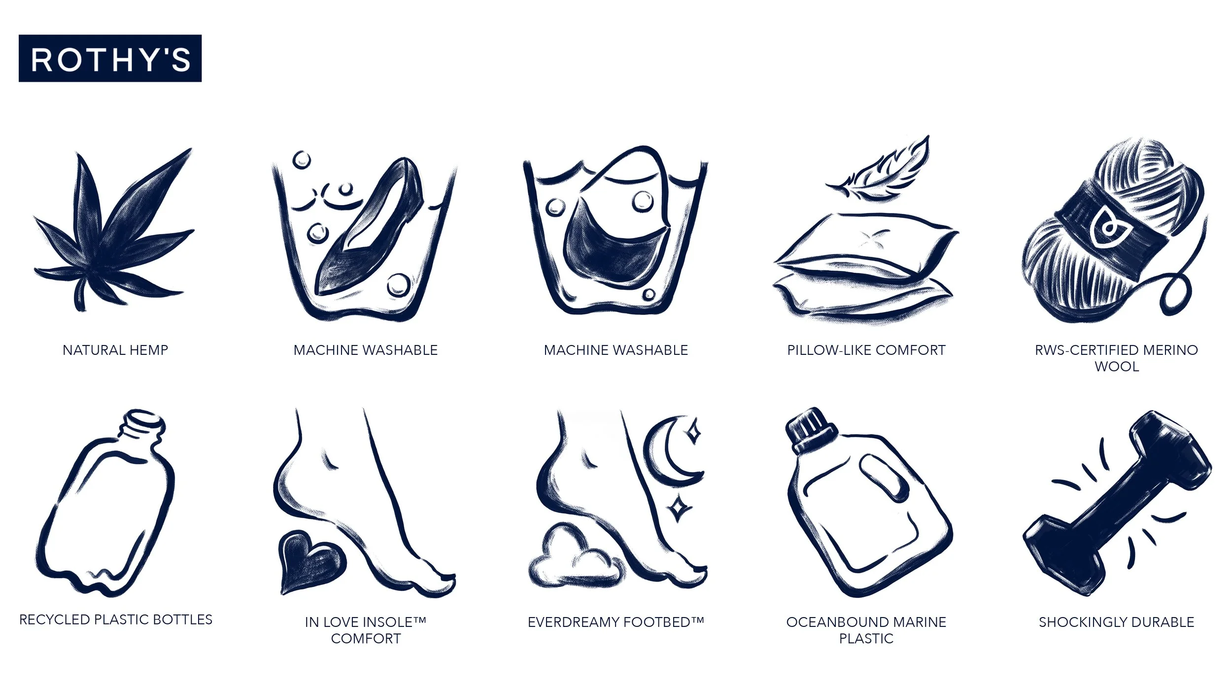 ROTHY’S | Illustrated digital icons with a hand-drawn feel for the ROTHY’S apparel brand.